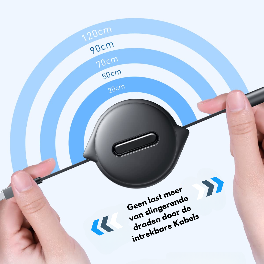 Mit einstellbaren Längen (20-120 cm) und Unterstützung für Schnellladung bis zu 3A bietet das MultiCord Pro™ maximale Flexibilität und Benutzerfreundlichkeit. Ideal für zu Hause, unterwegs oder im Büro – ein Kabel ist alles, was du brauchst.
