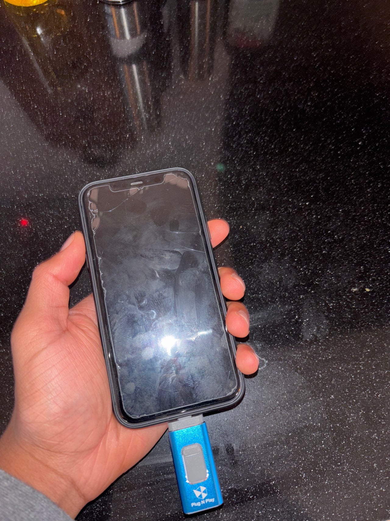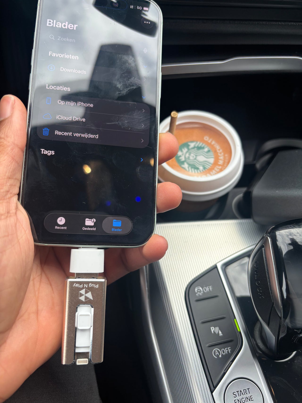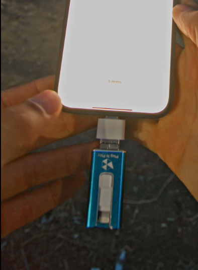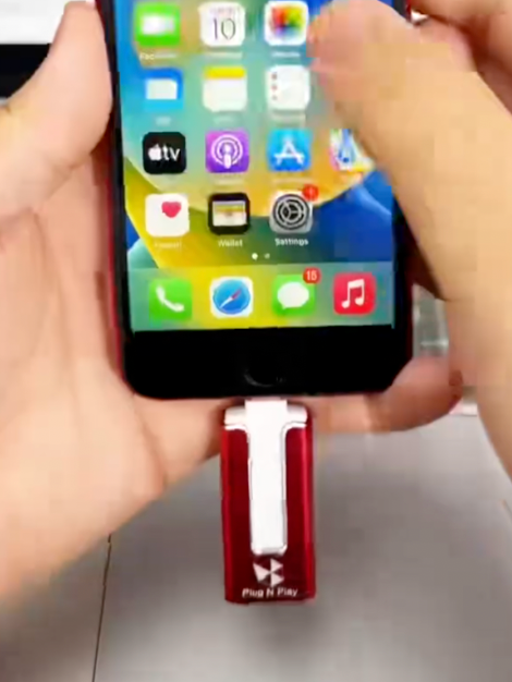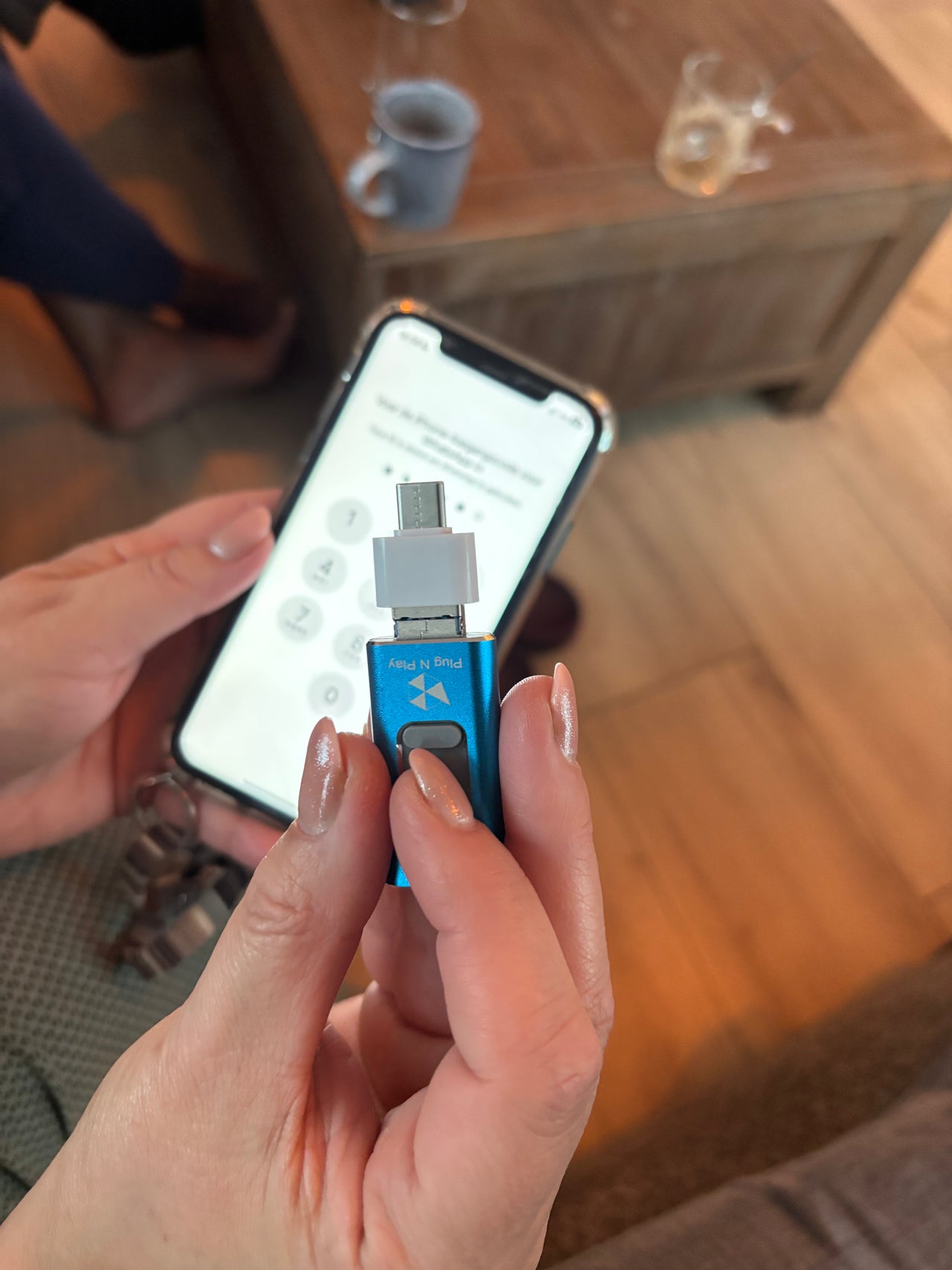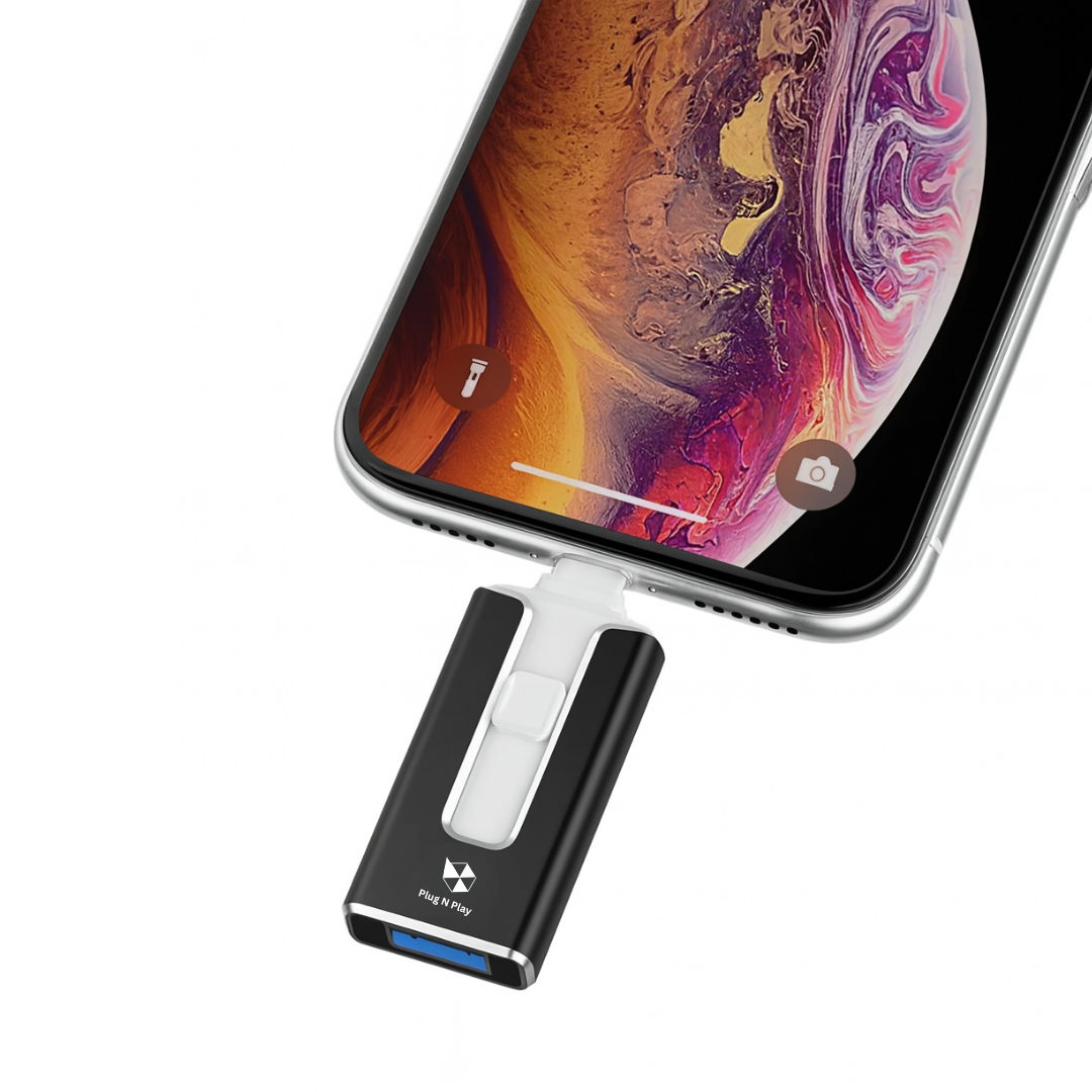 Schließe den 4-in-1 USB-Stick an dein iPhone oder Android an.