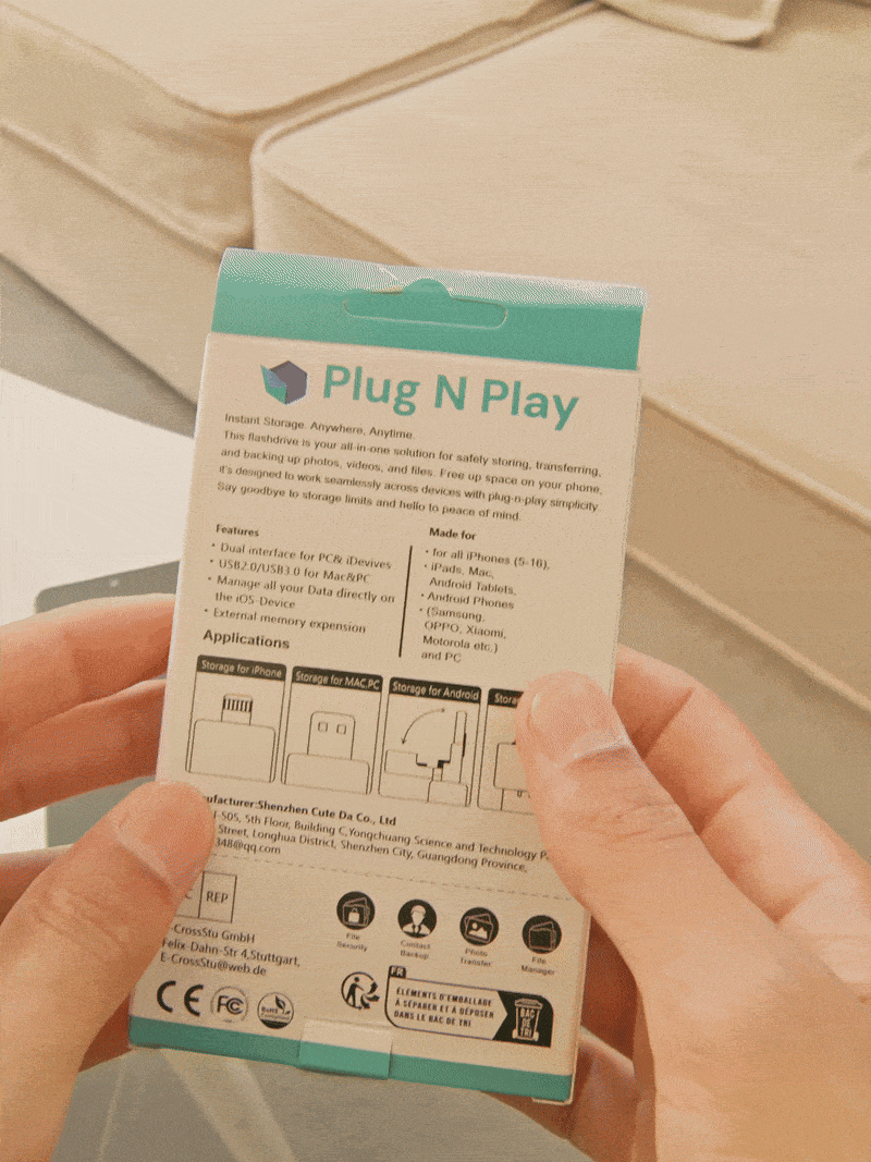 Dieser innovative USB-Stick wurde speziell entwickelt, um die Speicherkapazität Ihres Smartphones zu erweitern und ermöglicht es Ihnen, all Ihre wertvollen Fotos, Videos und Dokumente sicher zu speichern.