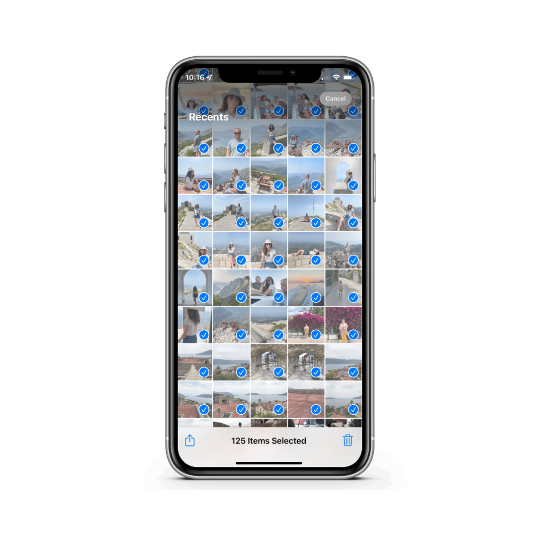 Öffnen Sie die Fotos-App (oder Galerie auf Android) und wählen Sie die Dateien aus, die Sie speichern möchten.